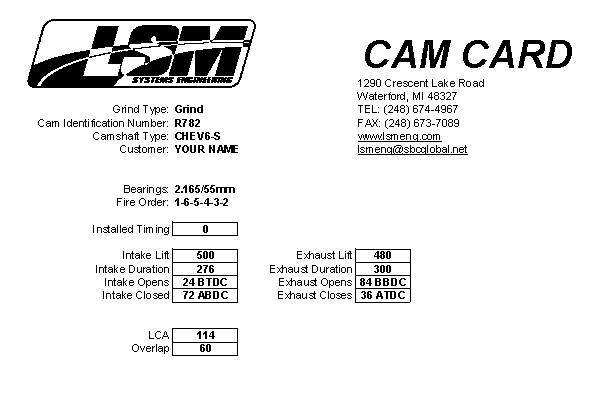 When you get your camshaft there should be two cam cards that arrive with the cam. The first card summarizes