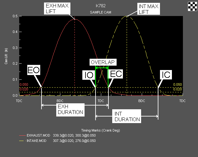 The following diagram graphically demonstrates the intake and exhaust valve events.