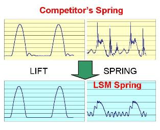 In correctly selecting an LSM spring, the spring surge was controlled and the valve lift followed the cam perfectly. This